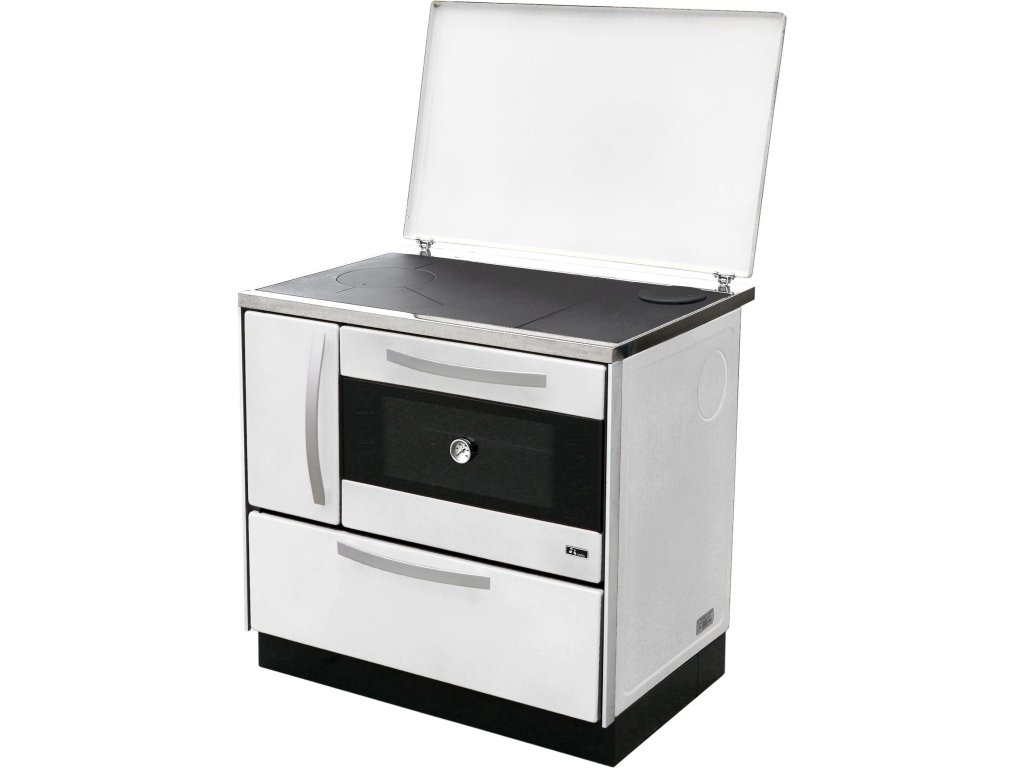 Emailliertes Heiz- und Backgerät in klassischer Form. Originalform, hervorragende Leistung. Der Rauchabzug befindet sich auf der rechten Seite.